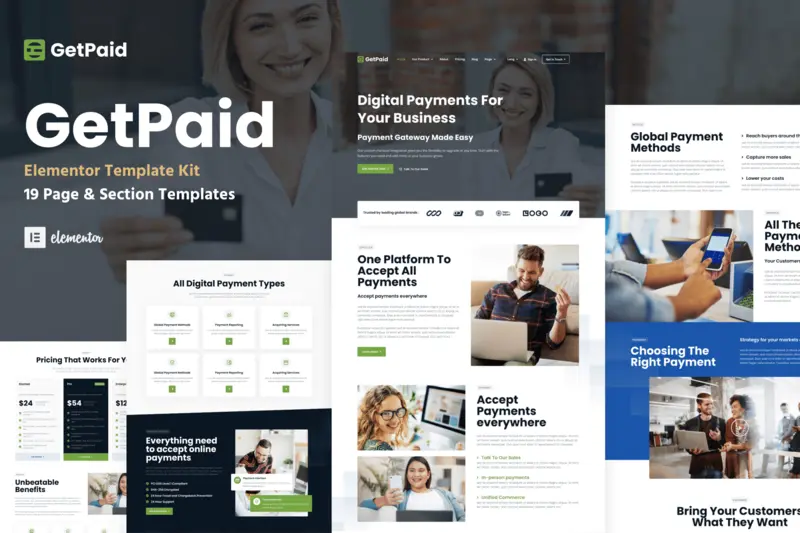 GetPaid – Payment Gateway & Fintech Service WordPress Elementor Template Kit