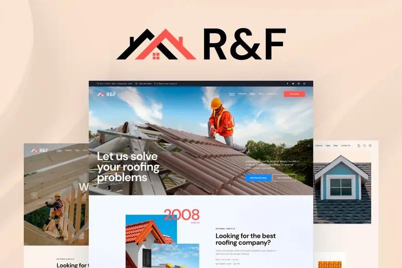 R&F là một WordPress Theme mới dành cho dịch vụ Roofing công nghiệp và nhà ở, với thiết kế sinh động và đầy đủ thông tin. Theme này đặc biệt phù hợp cho các website kinh doanh dịch vụ xây dựng và sửa chữa như công ty lợp mái, văn phòng kiến trúc, dịch vụ ống nước, thợ mộc, cải tạo hoặc trang trí nội thất. Ngoài ra, R&F cũng thích hợp cho các đội thợ chuyên nghiệp, doanh nghiệp xây dựng, công ty vệ sinh hay bất cứ website ngách nào liên quan đến sửa chữa nhà cửa và sinh hoạt gia đình.