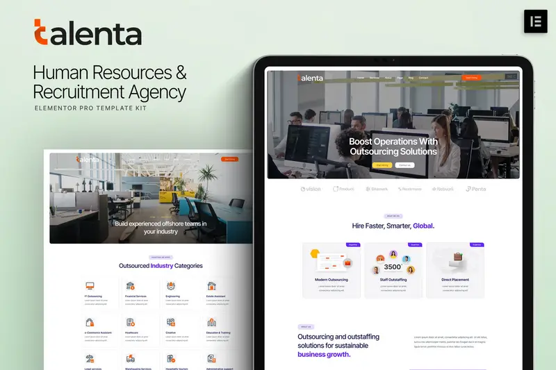 Talenta – Human Resources & Recruitment Agency Elementor Template Kit (KHÔNG phải là WordPress Theme) được thiết kế dành riêng cho các doanh nghiệp thuộc lĩnh vực Nhân sự, Agency tuyển dụng, giải pháp Staffing, Talent Acquisition, dịch vụ việc làm hoặc bất kỳ loại hình kinh doanh nào muốn giới thiệu dịch vụ chuyên nghiệp. Talenta sở hữu thiết kế đơn giản, hiện đại và sạch sẽ với bố cục 100% responsive, đồng thời rất dễ tùy chỉnh, phù hợp cho mọi người dùng mà không cần kiến thức về coding.