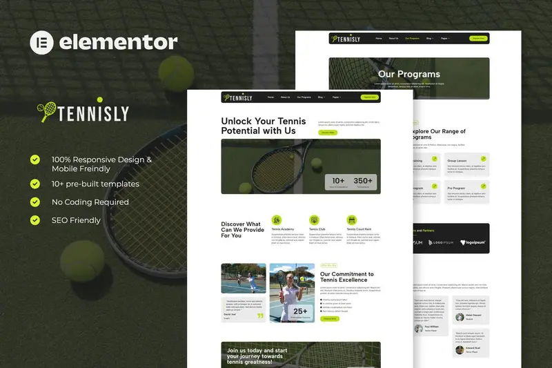 Tennisly – Tennis School & Sports Club Elementor Template Kit