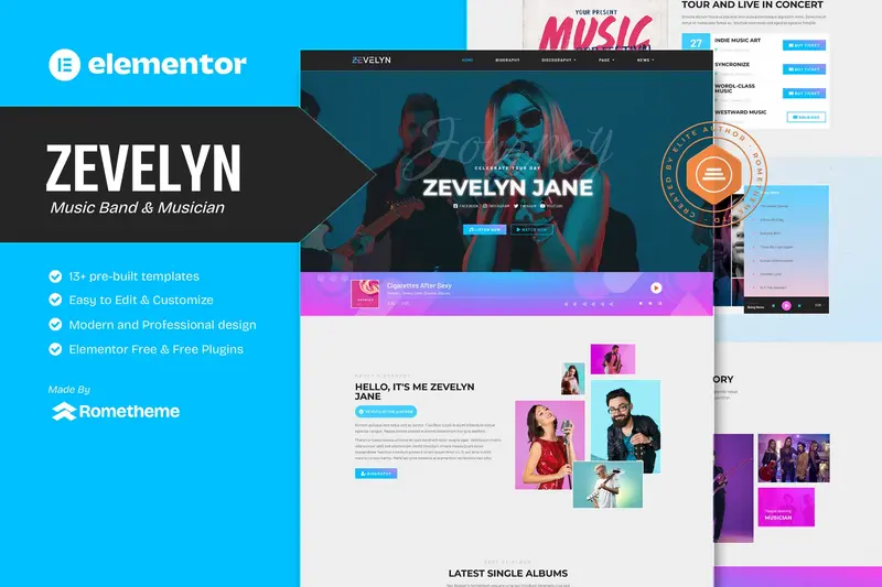 Giới thiệu tổng quan về Zevelyn – Music Band & Musician Elementor Template Kit